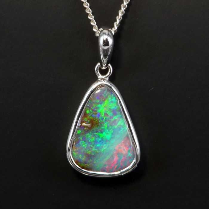 STERLING SILVER RHODIUM PLATE PENDANT set with a Boulder Opal from Queensland weighing 4.79cts.