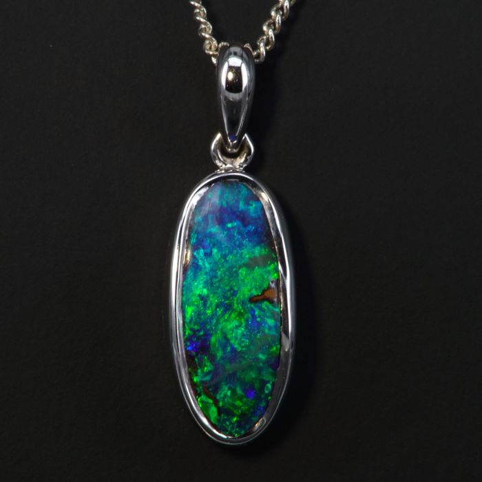 STERLING SILVER RHODIUM PLATE PENDANT set with a Boulder Opal from Queensland weighing 4.59cts total.